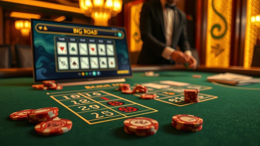 ถนนใหญ่ (Big Road) เป็นตารางที่แสดงผลการออกของไพ่แบบตรงไปตรงมาที่สุด โดยจะแสดงผลแพ้ชนะในแต่ละตาเป็นสีแดง (Player) และสีน้ำเงิน (Banker) หากผลออกเหมือนเดิม ก็จะเขียนต่อเนื่องในแนวตั้ง หากผลเปลี่ยน ก็จะเริ่มคอลัมน์ใหม่ การอ่านถนนใหญ่นี้จะช่วยให้เห็นแนวโน้มการออกไพ่ที่ชัดเจน เช่น การออกติดๆ กัน หรือการสลับไปมา ทำให้สามารถวางแผนการเดิมพันได้อย่างรวดเร็ว เหมาะสำหรับผู้เล่นที่ต้องการความกระชับในการตัดสินใจ